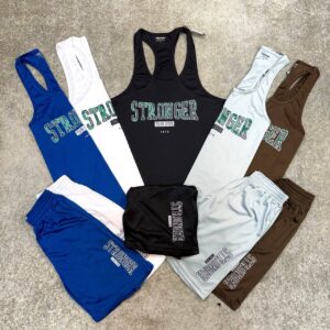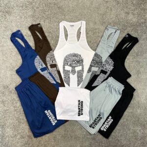 سفید سفید طوسی طوسی قهوه ایی قهوه ایی مشکی +1مشکی آبی ست مردانه قهرمانی و شلوارک کندویی stronger 499,000 تومان